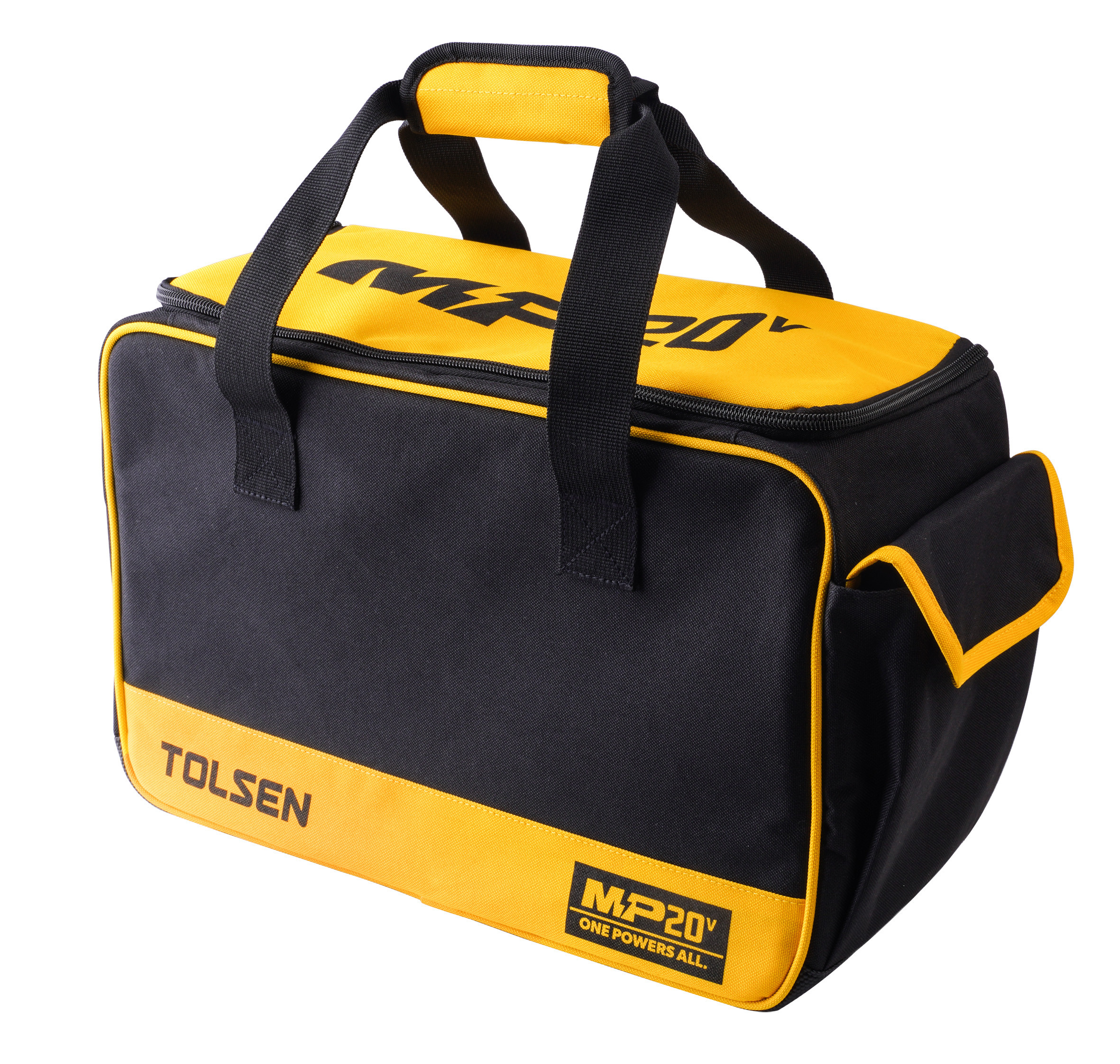 Чанта за инструменти MP20V – идеално решение за съхранение и пренасяне на акумулаторни инструменти от серия MP20V. Моделът е изработен от здрав и еластичен текстил, осигуряващ дълъг живот и надеждна защита. Чантата предлага размери 410×260×200 mm, които осигуряват достатъчно пространство за различни инструменти. Разполага с две подвижни прегради за удобно организиране и бърз достъп. Максималният ѝ капацитет е 8.5 kg, което я прави подходяща за професионална и любителска употреба. Идеален избор за подредено, сигурно и ефективно съхранение на вашите инструменти.