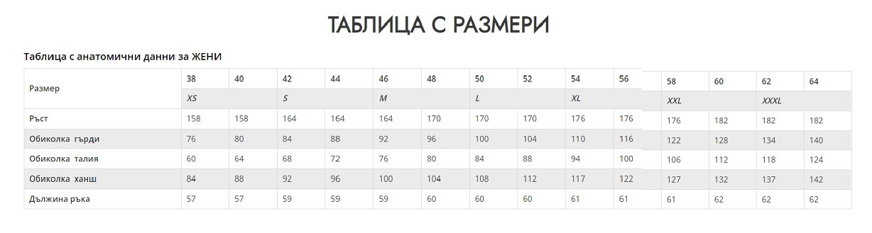 - Размери: XS-3XL