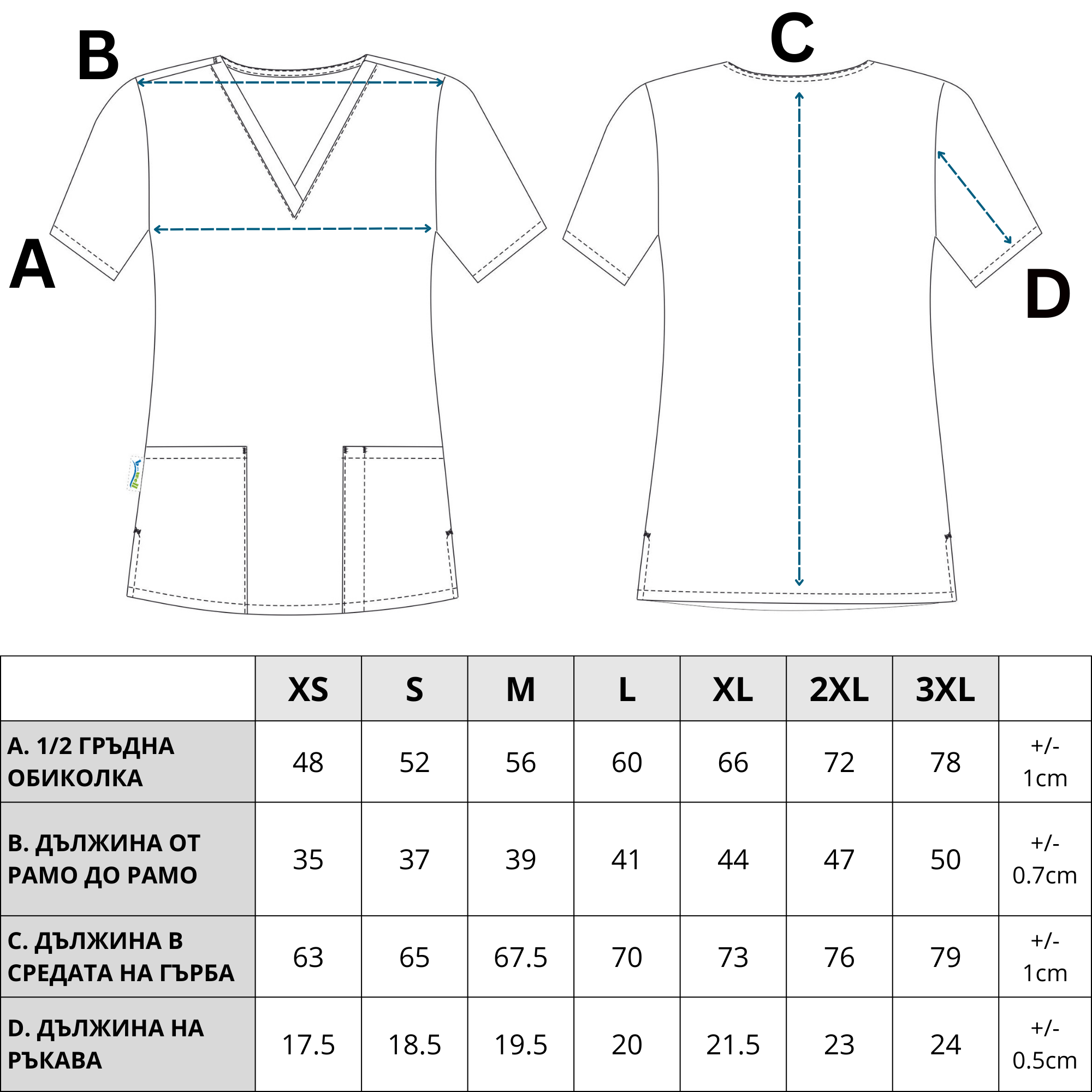 Дамска работна туника BAMBINA 400775 e дамска туника с весели мотиви. Туниката е изработена от висококачествен плат с еластан и технология 3D FLEX за по-голям комфорт. Тя е с къс ръкав, остро деколте и бие на гърба. Има два джоба, единият джоб е с раздели за химикал.