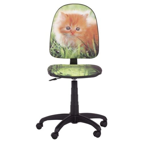 Детски стол Carmen Prestige коте е изработен в класическа конструкция на офис стол и осигурява функционалност на комфортна и практична мебел. Акцентът при този модел е висококачествената текстилна дамаска и атрактивният цветен принт върху нея с изображение на сладко котенце.