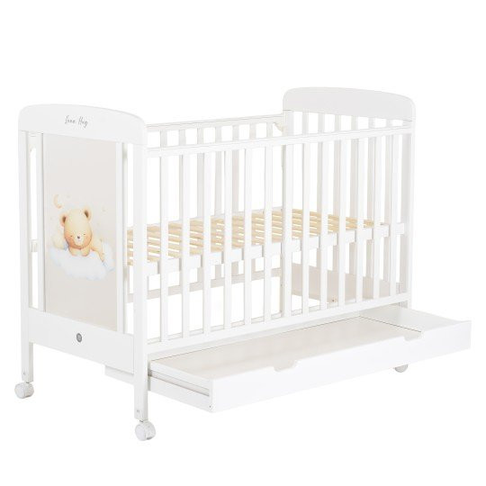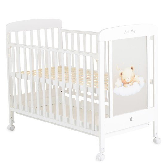Дървеното бебешко легло Lunahug от Moni 120x60 см съчетава безопасност, функционалност и стилен дизайн за детската стая. Изработено от качествено дърво със стабилна конструкция, то осигурява комфортна среда за сън на бебето. Леглото разполага с три нива за регулиране на матрака, падаща странична решетка за по-лесен достъп и просторно чекмедже за съхранение. Колелцата със стопери позволяват удобно преместване и стабилност. Декоративната светеща страна и включената стойка за балдахин създават уютна атмосфера. Подходящо за матрак 120x60 см. Отговаря на европейските стандарти EN 716.