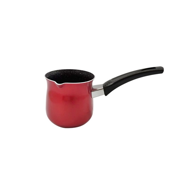 Джезве EK-10 MR е висококачествен съд за варене на кафе, мляко, чай и други топли напитки. Изработено е от здрав алуминий с дебелина 1,5 mm и разполага с устойчиво незалепващо мраморно покритие отвътре и червен металик отвън. Джезвето осигурява равномерно нагряване, удобно използване и лесно почистване. Подходящо е за ежедневна употреба и гарантира отличен вкус на напитките. Идеален избор за дома или офиса.