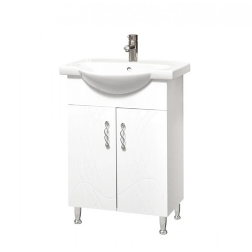 Долен шкаф за баня с умивалник Makena Бети е произведен от висококачествен PVC. Разполага с две вратички с механизъм плавно затваряне и с порцеланова мивка. Размерите му са (Ш х В х Д) 60 х 85 х 43см. Шкафът за баня е предназначен за статичен монтаж.Влагоустойчивите мебели за баня са произведени по високи стандарти за качество. Притежават стилен дизайн, който би се вписал по неповторим начин във всяка модерна баня.Батерията,колоният и горният шкаф не са включена в цената.