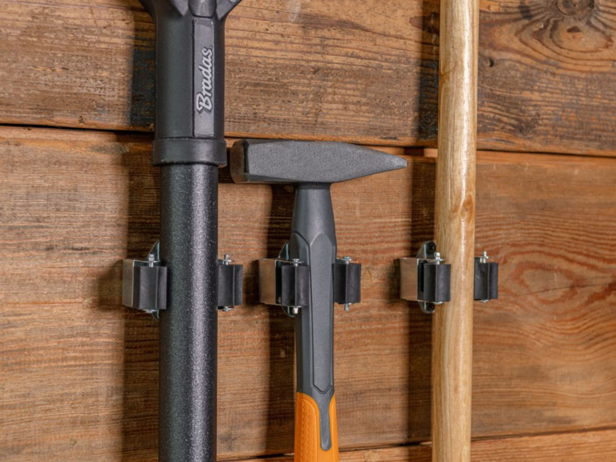 Организирайте лесно и ефективно вашите градински и ръчни инструменти с комплекта държачи Bradas. Всеки държач е подходящ за инструменти с диаметър от 22 до 35 мм – идеален за метли, лопати, гребла, мотики и други.