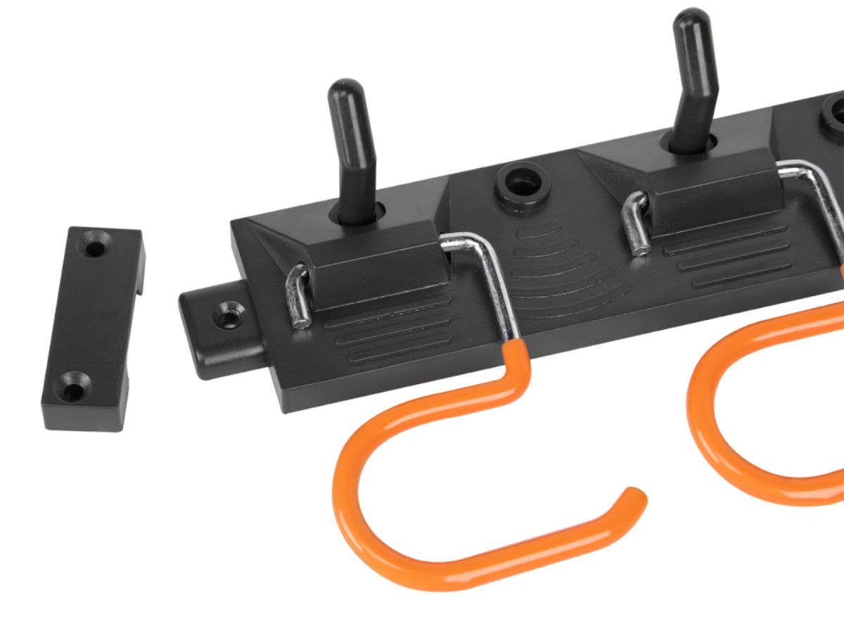 Комплектът Bradas включва 5 държача и 5 куки, изработени от здрава стомана с PVC покритие, монтирани на ABS шина с дължина 43 см. Тази компактна система за съхранение е идеална за организиране на инструменти и аксесоари с диаметър от 15 до 30 мм. Държачите и куките са лесни за монтаж на стена и позволяват последователно свързване на няколко шини, за да оптимизирате пространството във вашето работно помещение, гараж или склад.