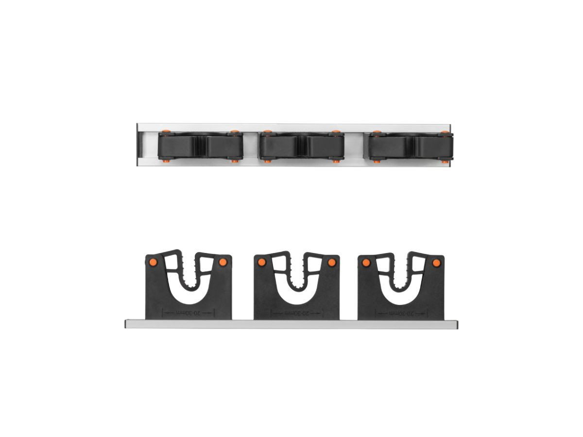 Организирайте лесно гаража, работилницата или домакинството с практичния комплект държачи за инструменти. Комплектът включва алуминиева шина с дължина 28 см и 3 броя здрави държачи, изработени от ABS пластмаса с PVC покритие. Те осигуряват сигурно захващане на дръжки с диаметър от Ø20 до Ø30 мм – идеални за метли, мопове, гребла, лопати и други градински инструменти.