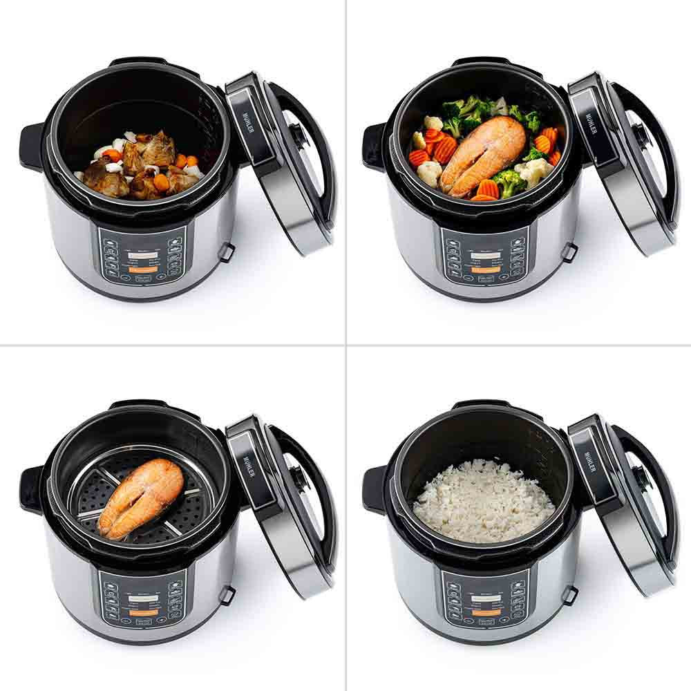 Устройството предлага избор на вкус – ненатрапчив, стандартен или наситен, както и контрол върху времето за готвене. За безопасност разполага със система за регулиране на налягането и дюза за освобождаване на излишното налягане.
