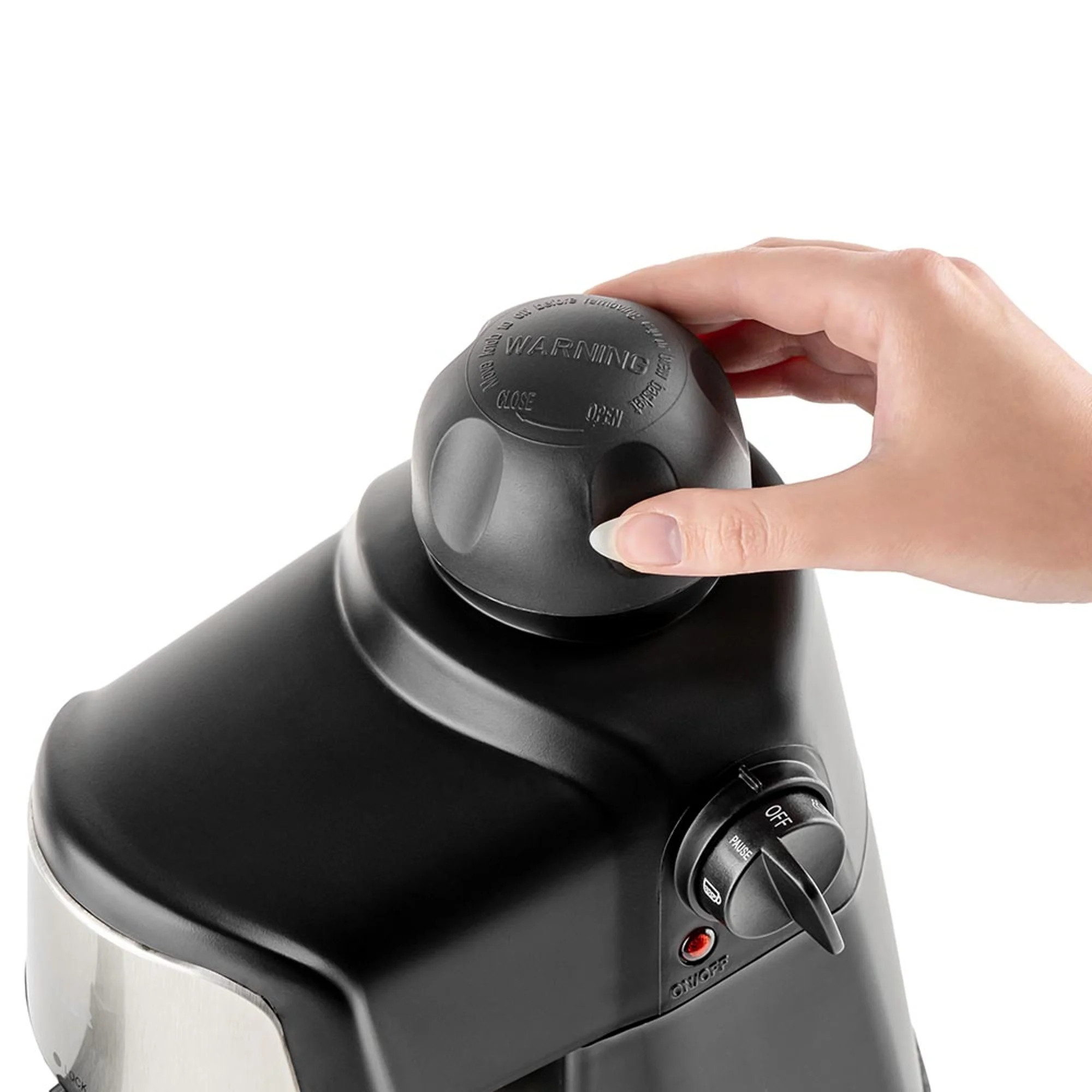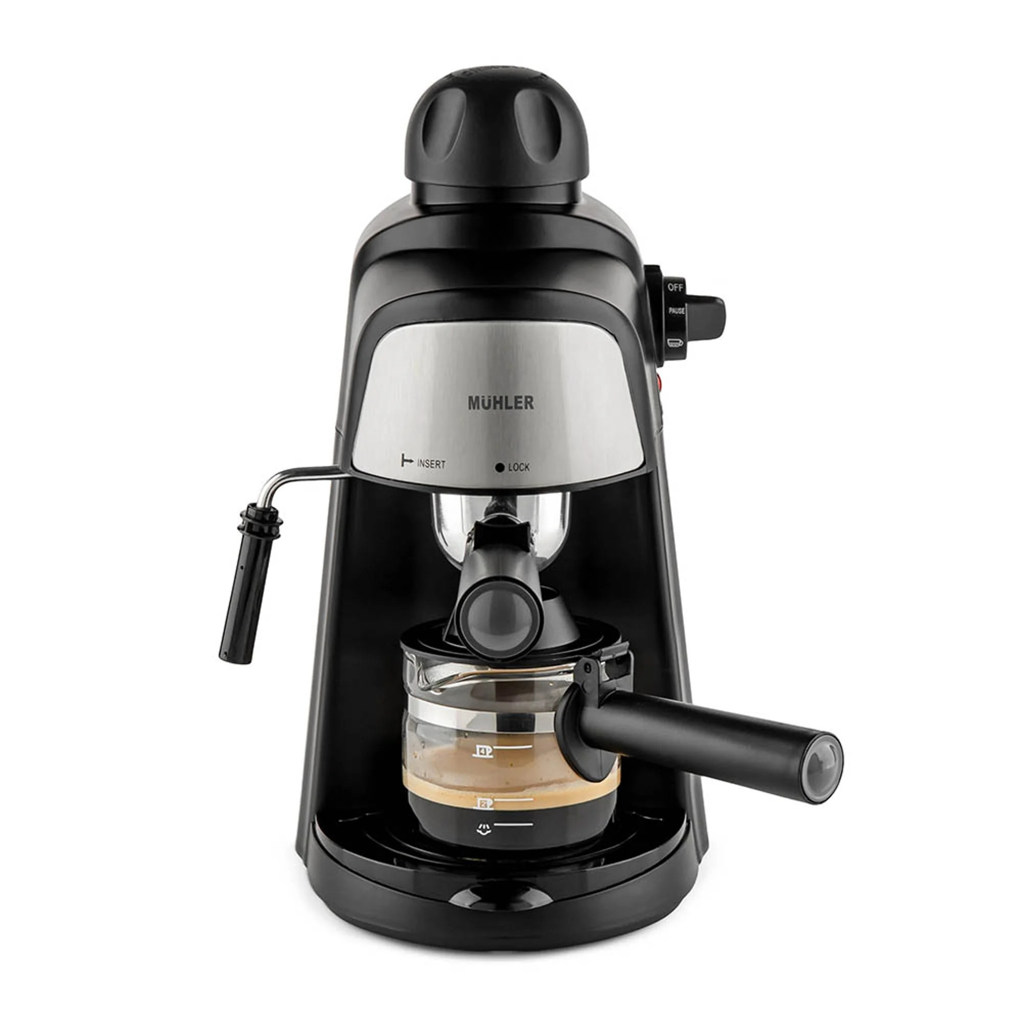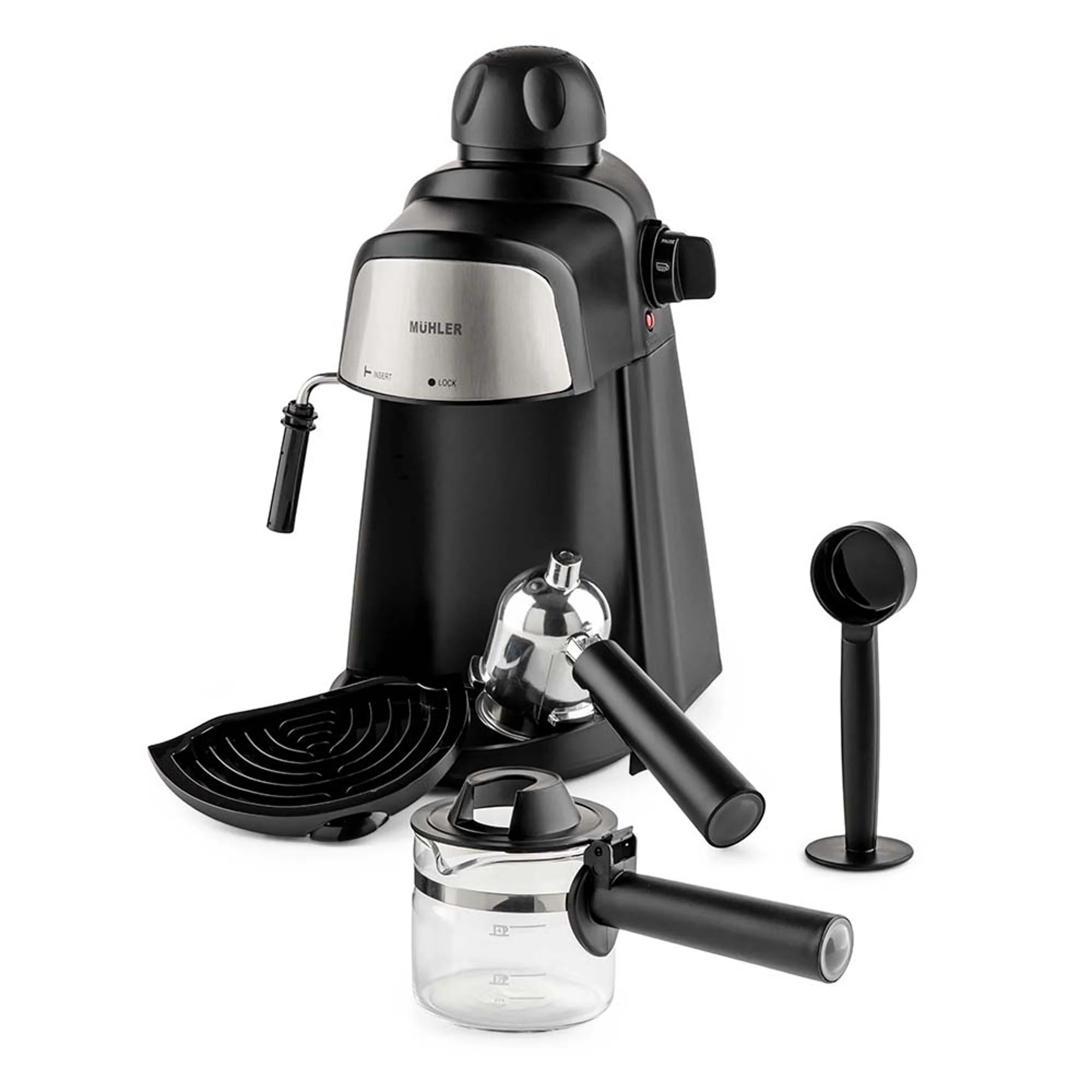 Еспресо машина MUHLER MCM-33 с помпа за налягане 3,5 бара предлага перфектно кафе с богат вкус. Капацитетът от 0,24 л е идеален за индивидуални порции. Машината разполага със светлинни индикатори, уред за разпенване на мляко и поставка за събиране на капки за лесно почистване. В комплекта е включена мерителна лъжица. Компактният дизайн и мощност 800W (220-240V, 50-60Hz) я правят удобна и надеждна за всеки дом или офис. Насладете се на качествено еспресо у дома.