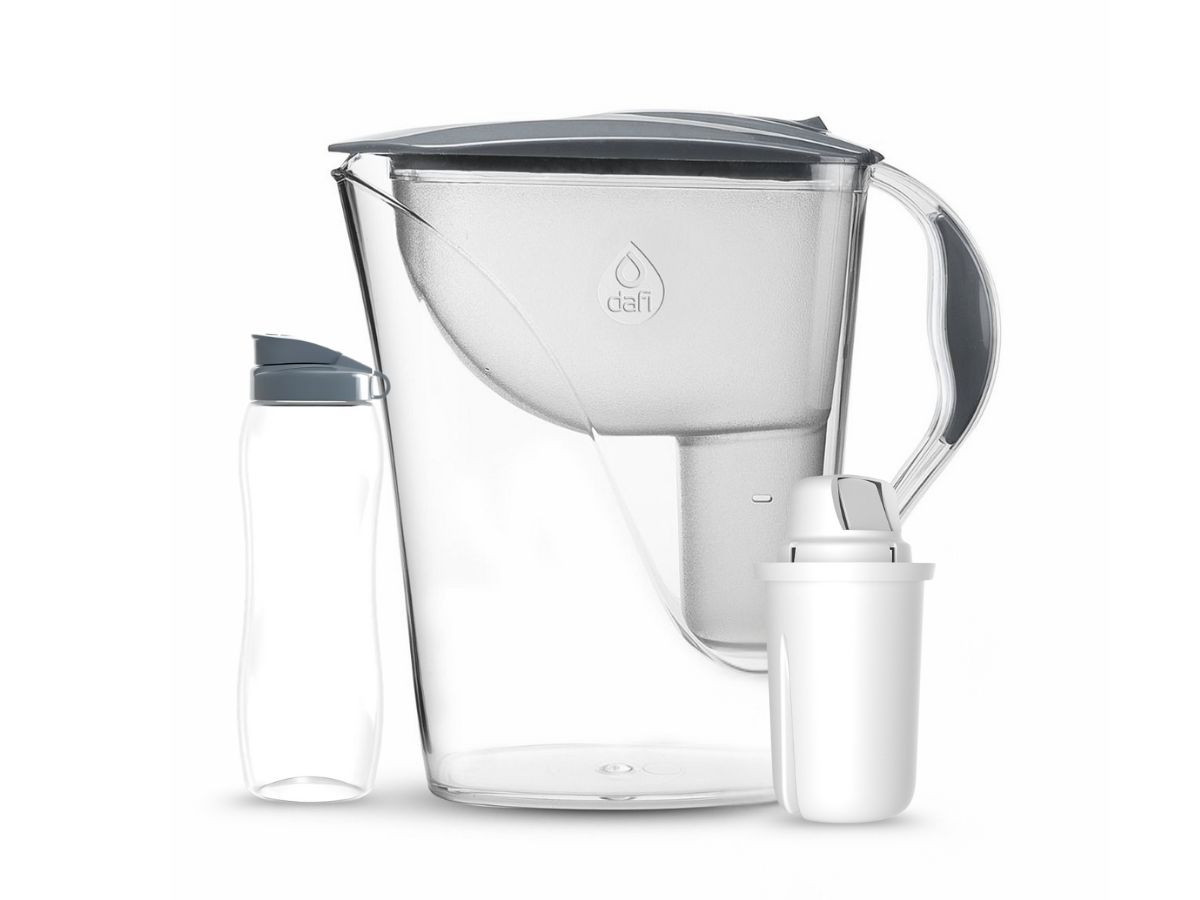 Каната е лесна за пълнене, побира се удобно в хладилника и е произведена в ЕС от безопасни, BPA Free материали. С нея получавате и подарък – филтрираща бутилка Dafi 600 мл, идеална за чиста вода в движение.