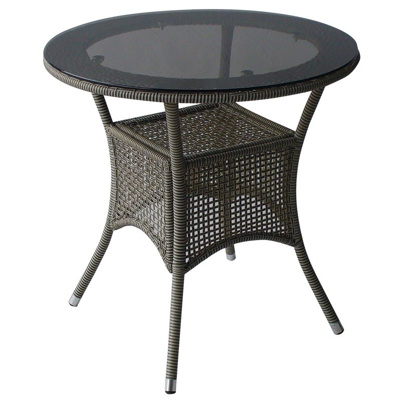 Градинска маса PVC ратан San Valente 46-1 е кръгла маса с красив дизайн и размери 75 х 75 см. Изработена е от ПВЦ ратан, с метална конструкция и плот от закалено стъкло. Предлага се в три цвята - бял, сиво бежов и кафяв.