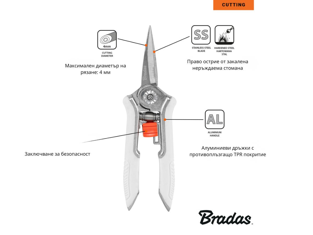 Градинска ножица Bradas White Line с право острие