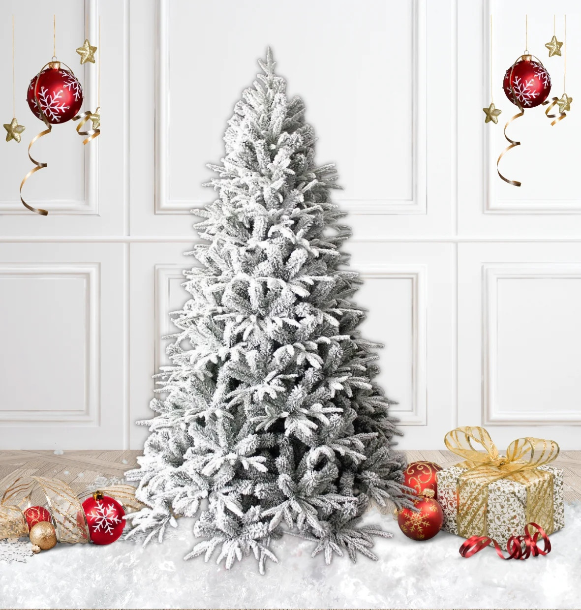 Поглезете дома си с изкуствена елха Royal с над 1500 клона и реалистични иглички, наподобяващи естествена елха. Комбинацията от 2D и 3D клони създава обемен и красив 3D ефект. Елхата е силно заснежена за празнично усещане и включва здрава метална стойка за стабилност. Идеална за декорация на дома, офиса или обществени пространства по време на коледните празници. Насладете се на лесна поддръжка и дълготрайна красота, без нужда от поливане или почистване на иглички.