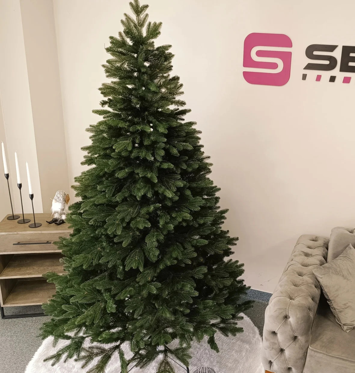 Изкуствена Коледна елха Royal Green 2D/3D с реалистичен вид – идеалният избор за стилна празнична украса у дома или в офиса. Изработена от висококачествени 3D иглички PE + PVC, елхата впечатлява с естествен зелен цвят и гъста структура от над 1500 клона. Игличките не падат и не избледняват, запазвайки формата си дълги години. Елхата се монтира лесно, има здравa метална стойка и е подходяща за многогодишна употреба. Перфектното решение за уютна и елегантна Коледна декорация.
