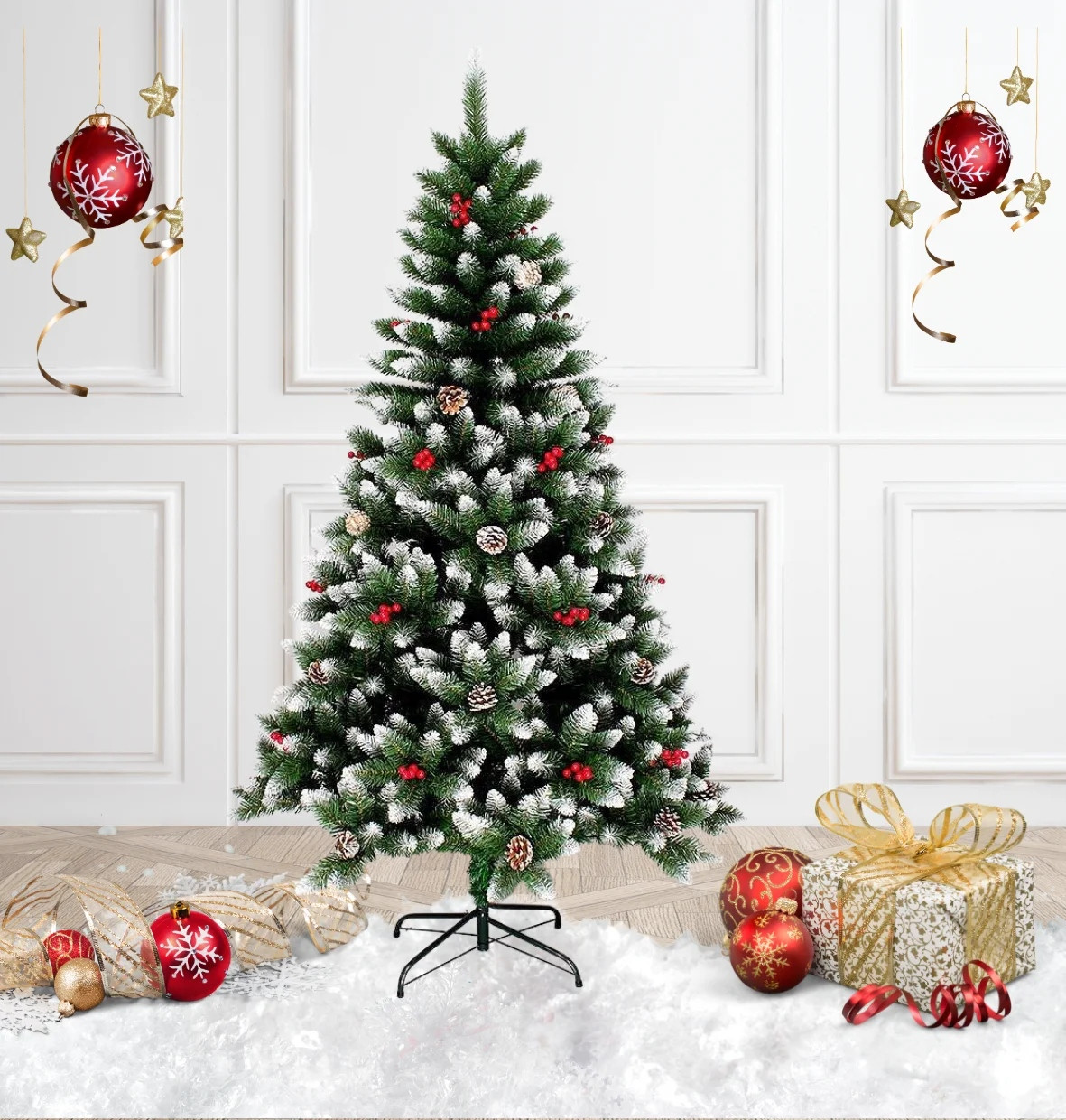 Изкуствена коледна елха Winter Magic – стилна и реалистична елха със заснежени връхчета, червени боровинки и шишарки за празнично настроение. Изработена е от висококачествени материали с регулируеми клони за лесно оформяне и естествен вид. Елхата е в зелен цвят, с височина 120 см или 150 см и диаметър 95 см, идеална за дома или офиса. Здрава метална стойка осигурява стабилност и дълготрайност. Изберете Winter Magic – перфектната изкуствена коледна елха за топла и уютна коледна атмосфера у дома.
