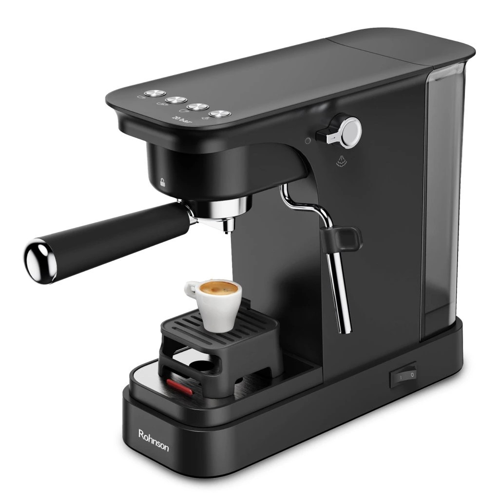 Стилна и модерна кафемашина с тънък дизайн, предлагаща 20 бара налягане за кремообразна пяна. Позволява задаване на количеството кафе и разполага с подвижен прозрачен резервоар от 0,8 л. Поддържа функции за 1 или 2 чаши, американо и разпенване на мляко. Вграден филтър за кафе, дюза за капучино и автоматично изключване гарантират удобство и безопасност. Система за защита от прегряване и свръхналягане и енергийно ефективна ERP технология. Мощност: 1400 W. Идеален избор за любителите на еспресо и капучино у дома.