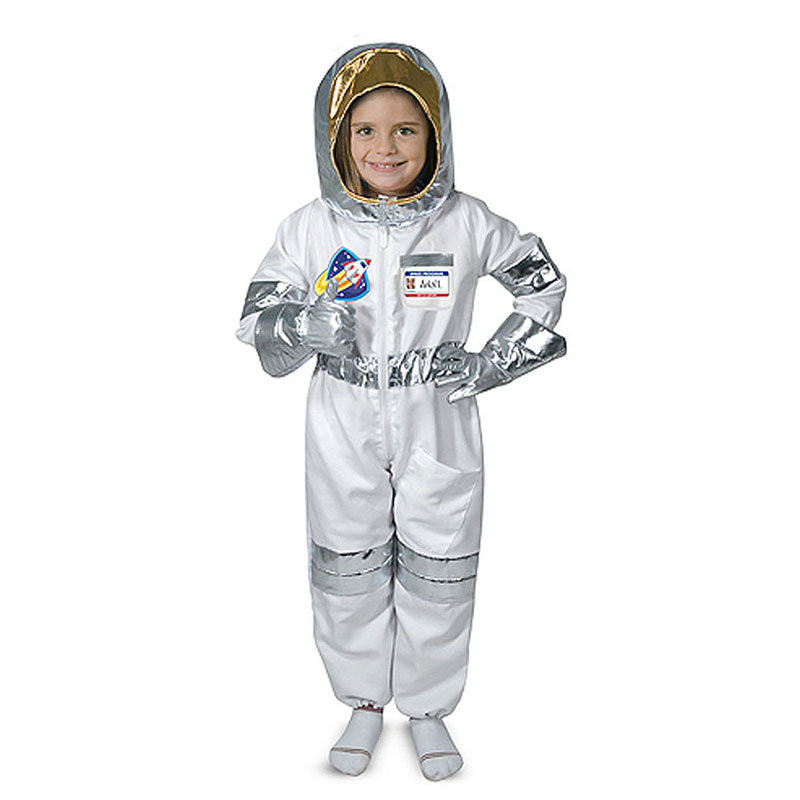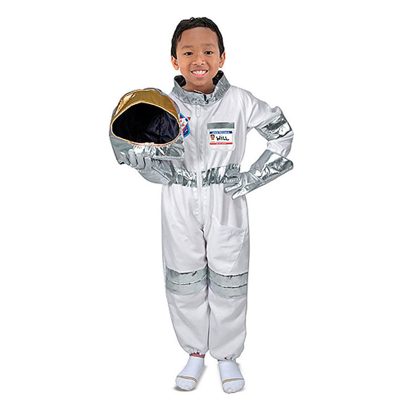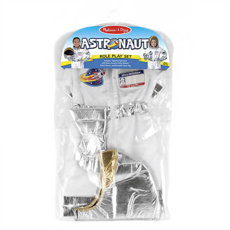 Подарете на децата вълнуващо космическо приключение с костюма Астронавт на Melissa & Doug. Подходящ за деца между 3 и 6 години, комплектът включва лъскави ръкавици, шлем и сменяема табелка с името на малкия астронавт. Изработен с внимание към детайла и здрави материали, костюмът издържа на множество въображаеми игри. Идеален за ролеви игри, детски партита и забавления у дома, той развива креативността и въображението на малките изследователи на космоса. Размери: 70 x 44 x 5 см.
