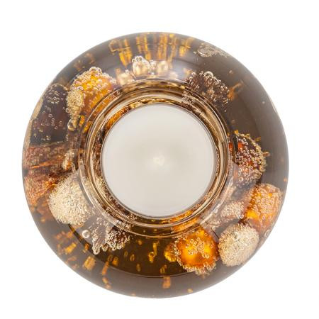 Този елегантен коледен свещник DLG01H е изработен от висококачествено стъкло и впечатлява с изискана вътрешна декорация, създаваща уютна празнична атмосфера. Идеален е за коледна украса на дома, офиса или като стилен подарък. Свещникът включва чаена свещ, която осигурява топла и нежна светлина. Компактните размери 8 х 9 см го правят подходящ за маса, рафт или прозорец. Отличен избор за всеки, който търси красив и функционален коледен аксесоар.