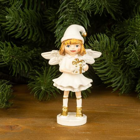 Коледна фигурка Бяло ангелче с подаръци AR041