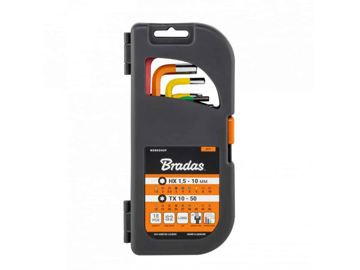 - Комплект Г-образни дълги ключове Bradas – 18 части