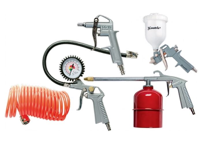 Комплект пневматични инструменти 5 части с бързи връзки MTX е универсален комплект, произведен от висококачествен материал. Използва се за бояджийски, промиващи, продухващи дейности, както и за помпане на гуми. Подходящ е за всички пневматични компресори. В комплекта има маркуч с дължина 5 метра за бързосвалящата се връзка.