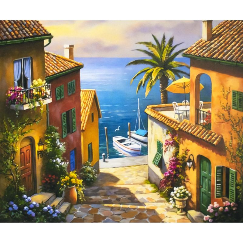 Комплект за рисуване по номера с платно 40х30 см, е забавно занимание както за деца, така и за възрастни. Подобрява концентрацията, сръчността и координацията. Съдържа платно с дървена рамка и размери 40х30 см, акрилни бои, три четки (две обли и една плоска), номерирана схема, както и куки за закачане на готовата картина. Платното е с отпечатани контури и попълнени номера, съответстващи на цветовете (всяко бурканче с боя е номерирано). Комплектът е пакетиран в кутия с дръжка за удобно пренасяне. Подходящ за деца над 7 години. Тегло за комплект - 550 г. Размери кутия – 41х31х2 см.