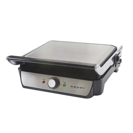 Контакт грил с незалепващи плочи Beper BT.300 е с корпус от неръждаема стомана и пластмаса. Подвижните и миещи се в съдомиялна плочи, могат да се отварят на 180 °. Изработени са от лят алуминий с покритие от гранит, което не залепва. Има регулируема температура, работна светлина и светлинен индикатор показващ достигната температура. Практичната сгъваема база позволява лесно отичане на мазнините.