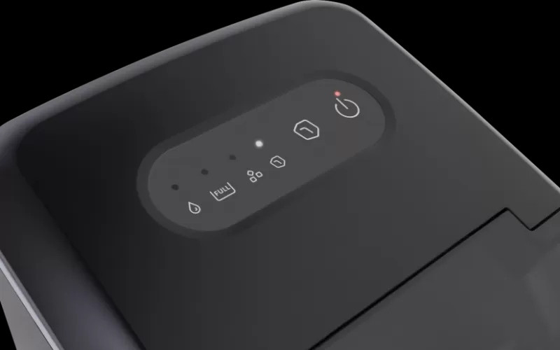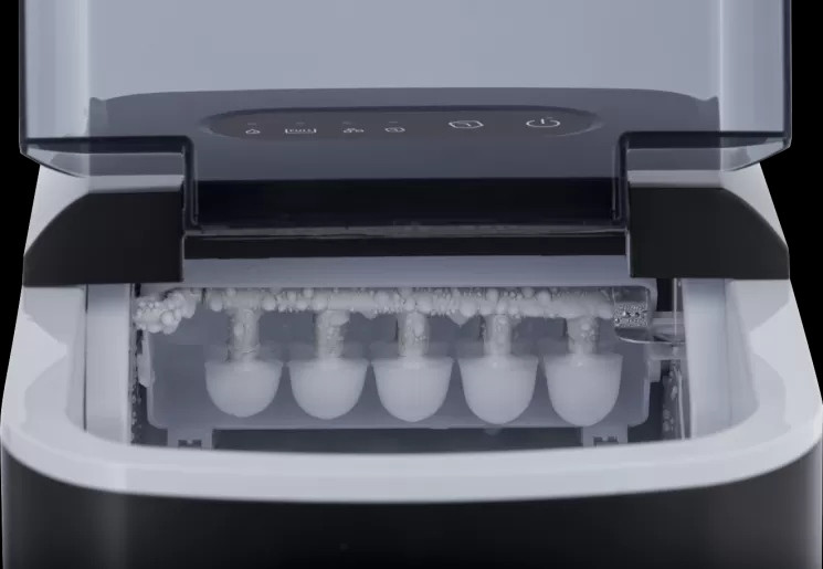 Уредът разполага с индикатор за нивото на водата и леда, както и подвижен контейнер за лесно почистване. Работи с екологичен охладител R600a.