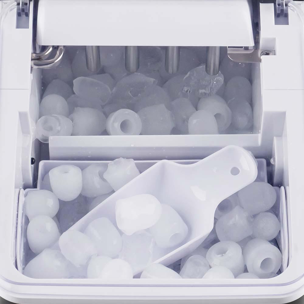 Времето за производство на лед е около 6 минути на цикъл, със скорост от 9 кубчета лед на цикъл. Подвижната кошница събира до 80 кубчета лед за удобно съхранение. Ледогенераторът работи с компресорно охлаждане и екологичен хладилен агент R600a.