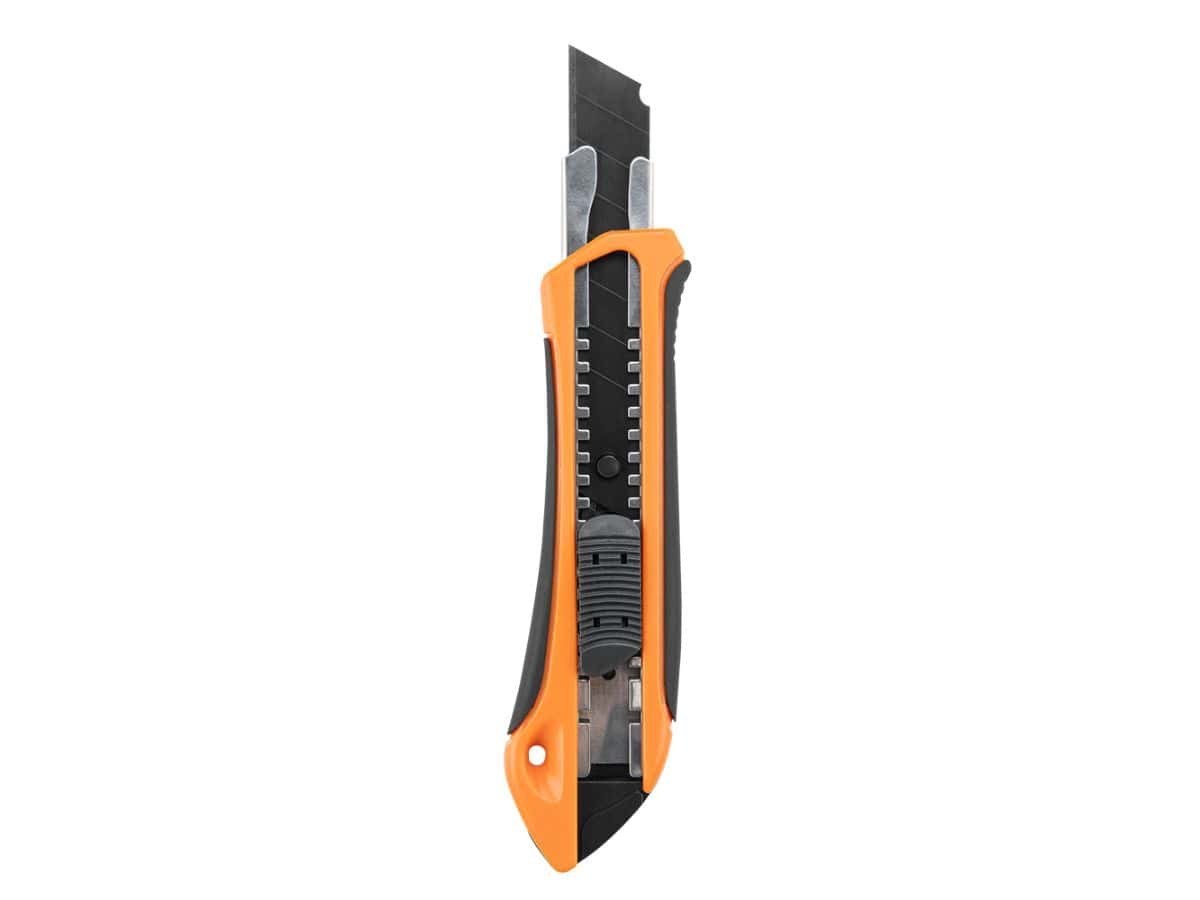 Макетен нож PVC с гумирана дръжка и ширина на острието 18 мм. Този инструмент е създаден за прецизно и лесно рязане благодарение на висококачественото стоманено острие с дебелина 0,5 мм. Макетният нож разполага с надежден самозаключващ се плъзгащ механизъм с щракващ стоп, който осигурява безопасност и удобство при работа.