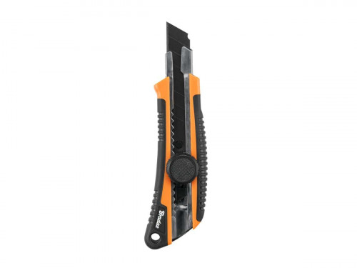 Качествен макетен нож с острието с ширина 18 мм и дебелина 0,5 мм. Този инструмент е изработен със здрава стоманена острие, което гарантира лесно и прецизно рязане на различни материали. Корпусът е изработен от PVC и покрит с TPR материал, осигуряващ удобен и сигурен захват при работа.