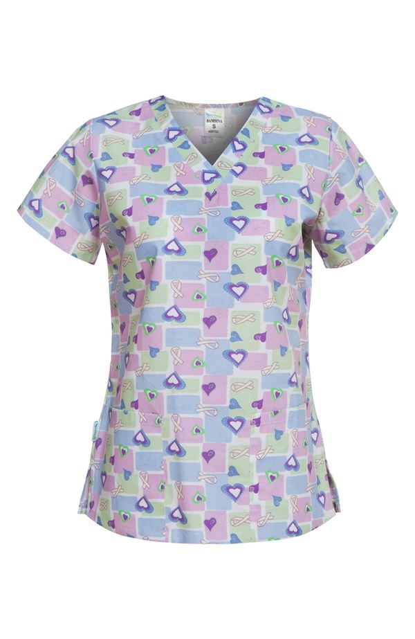 Медицинска дамска туника Bambina сини сърца / панделки е лека и комфортна.