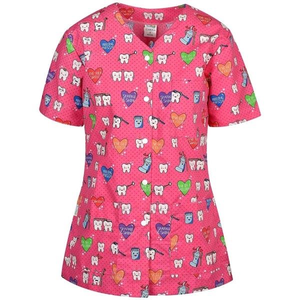 Медицинска дамска туника с копчета Carina зъби е с удобна кройка и весели мотиви.