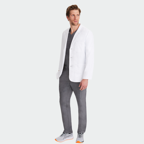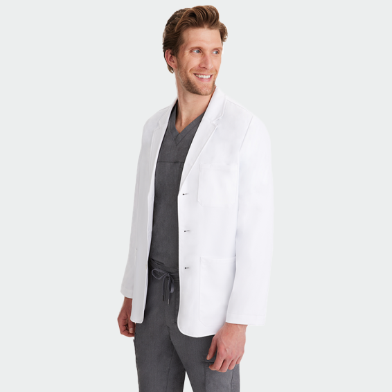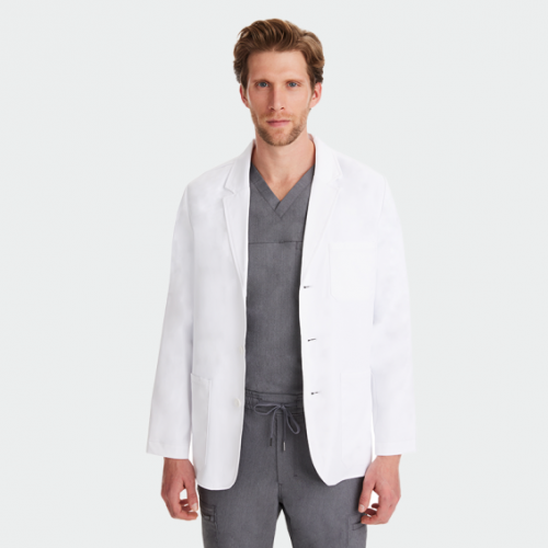 Мъжка медицинска престилка HH LEO от марката Healing Hands е стилна и функционална манта тип "сако", подходяща за лекари, зъболекари и козметични специалисти. С дължина 76 см, закопчаване с копчета, два долни и един горен джоб, тя съчетава елегантна визия и практичност. Изработена от висококачествена материя – 97% полиестер и 3% еластан (175 г/м²), тя е мека, издръжлива и удобна за целодневна употреба. Идеален избор за модерни медицински и козметични кабинети, където визията и комфортът имат значение.