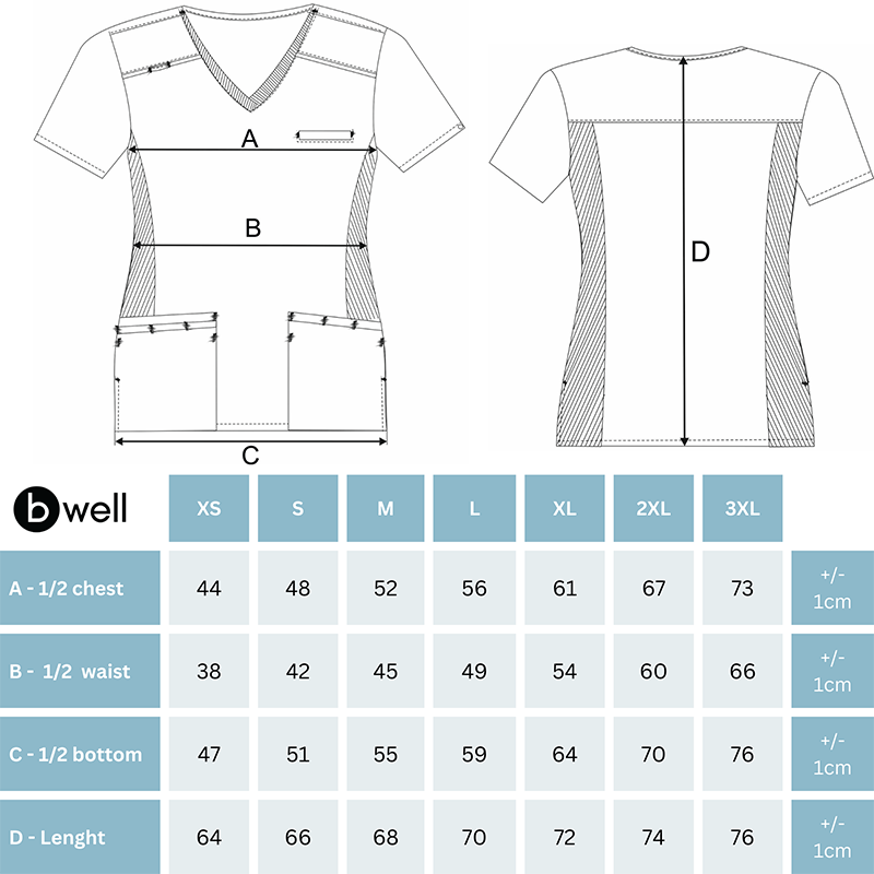 Медицинската туника JULIA Bwell е стилен и практичен избор за медицински специалисти. Изработена от висококачествена материя – 72% полиестер, 21% вискоза и 7% еластан с плътност 200 гр/м², тя осигурява комфорт и свобода на движение през целия ден. Туниката разполага с остро деколте, къс ръкав, функционални джобове с отделения за лични вещи и халка за бадж. Благодарение на модерната си кройка и мека текстура, медицинската туника JULIA съчетава професионален външен вид, удобство и издръжливост – идеален избор за динамичната работна среда.