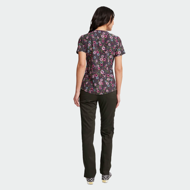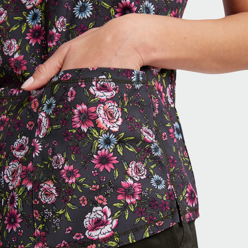 Медицинска туника Cherokee CK703 Romantic Garden е модерна дамска туника с втален силует, V-образно деколте и стилен флорален принт. Изработена от висококачествена материя – 91% полиестер и 9% еластан (175 г/м²), осигурява комфорт, лекота и лесна поддръжка. Туниката разполага с къс ръкав и два предни джоба.