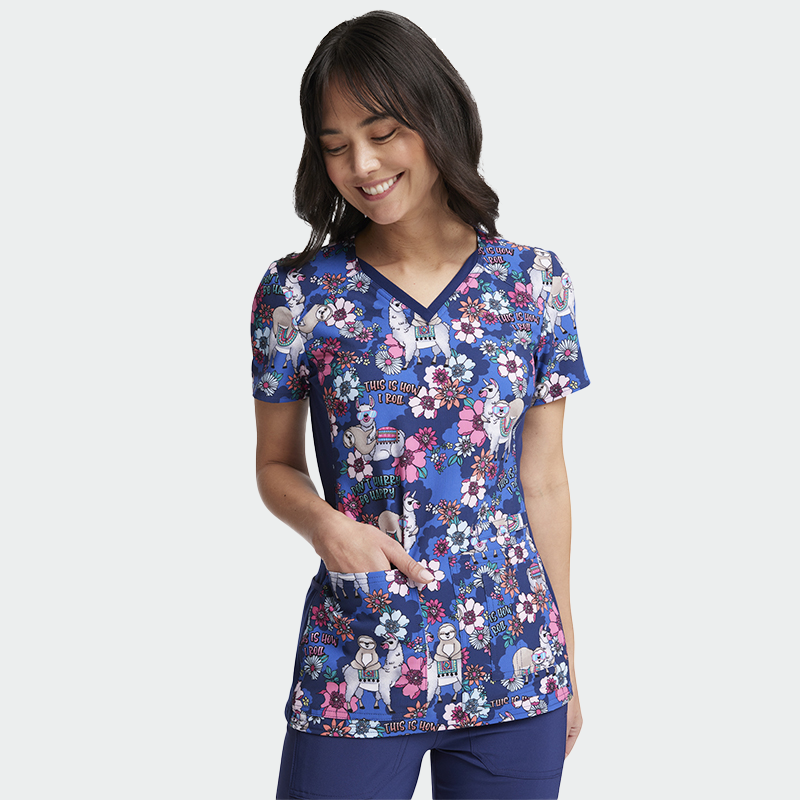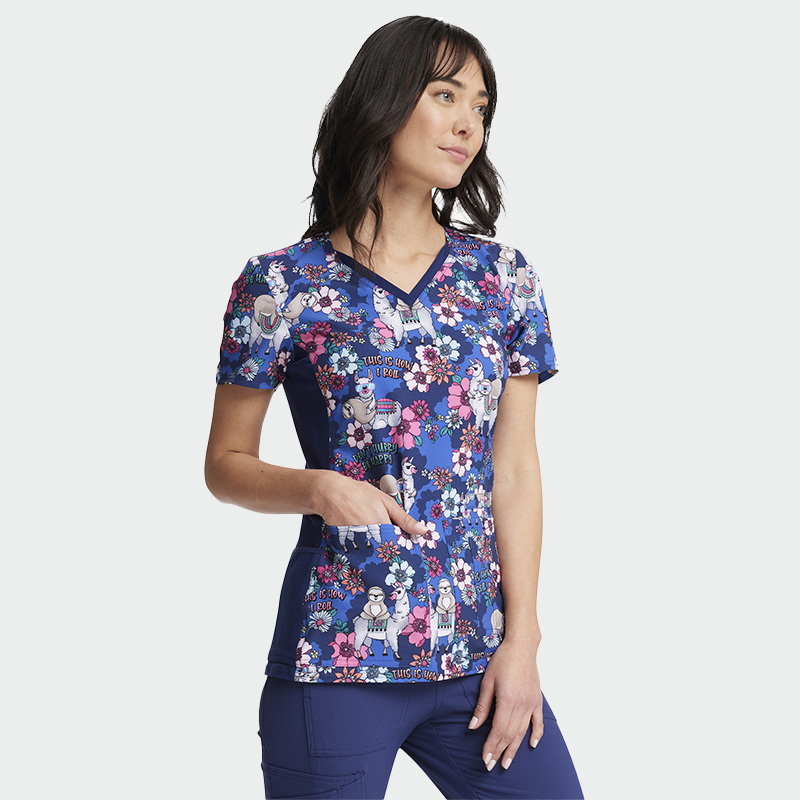 Медицинска туника Cherokee IFLEX CK636 е дамска туника с втален силует и V-образно деколте, подходяща за лекари, медицински сестри, зъболекари и фармацевти. Изработена е от 93% полиестер и 7% еластан (175 г/м²), с дишащи странични платки за комфорт през целия ден. Туниката има четири джоба, включително ляв джоб за ножица и десен джоб за мобилен телефон. Късият ръкав и модерният цветен принт съчетават стил и удобство. Cherokee IFLEX CK636 осигурява лесна поддръжка и добавя настроение към работното ежедневие. Размерите са уголемени – проверете таблицата за точен избор.