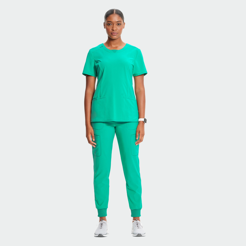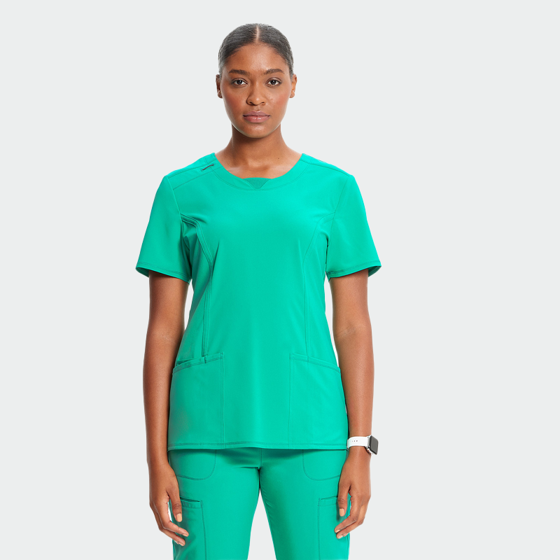 Медицинската туника Cherokee INFINITY 2624A е стилна и елегантна дамска туника с втален силует и модерен дизайн. Изработена е от 95% полиестер и 5% еластан (175 г/м²), което осигурява мекота, комфорт и издръжливост. Моделът разполага с къс ръкав, обло деколте, два външни джоба и един вътрешен, както и еластичен гръб с линии за по-добро прилягане. Туниката има гайка за бадж на дясното рамо. Подходяща е за лекари, медицински сестри, зъболекари, фармацевти, ветеринари и студенти. Важно: размерите на Cherokee са уголемени.