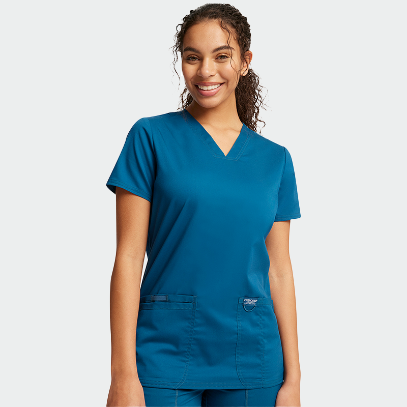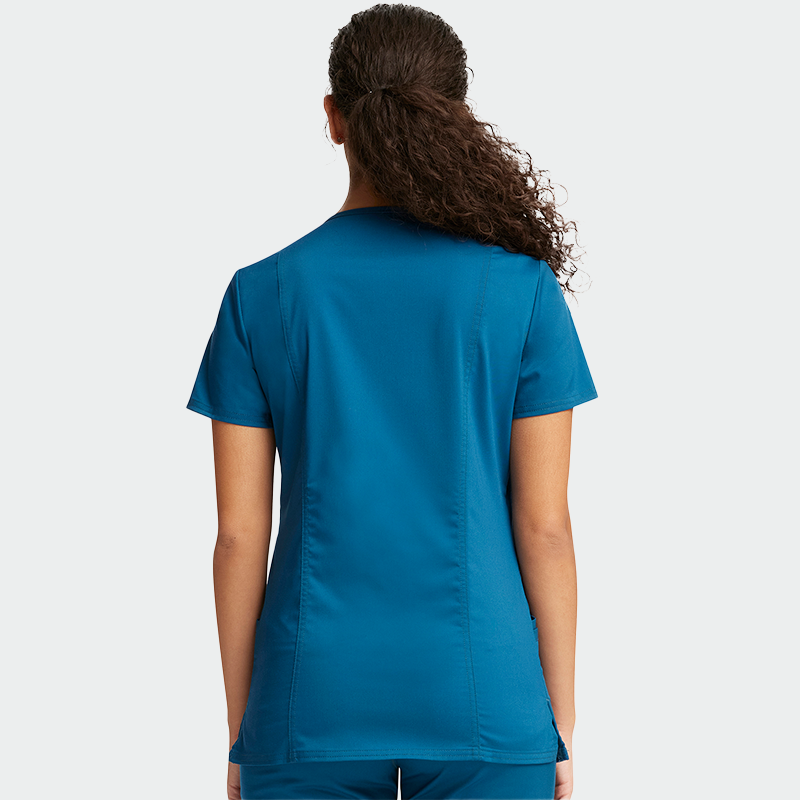 Медицинска туника Cherokee REVOLUTION WWE620 е модерна дамска туника с втален силует и остро деколте, изработена от висококачествена смес – 78% полиестер, 20% вискоза и 2% еластан (170 г/м²). Разполага с къс ръкав, два предни джоба – единият с отделение за химикалка и халка за бадж. Меката и дишаща материя осигурява комфорт и е подходяща за лекари, медицински сестри, зъболекари, фармацевти, ветеринари и студенти. Предлага се в няколко модерни цвята и е идеална за ежедневна медицинска работа.
