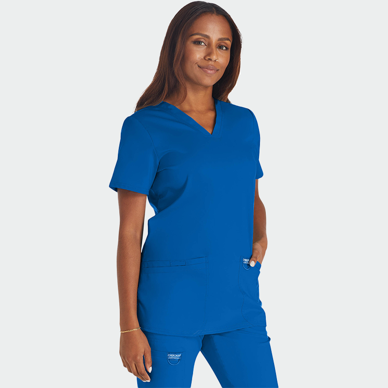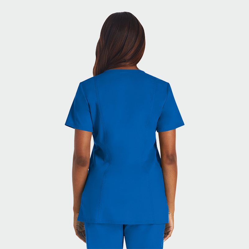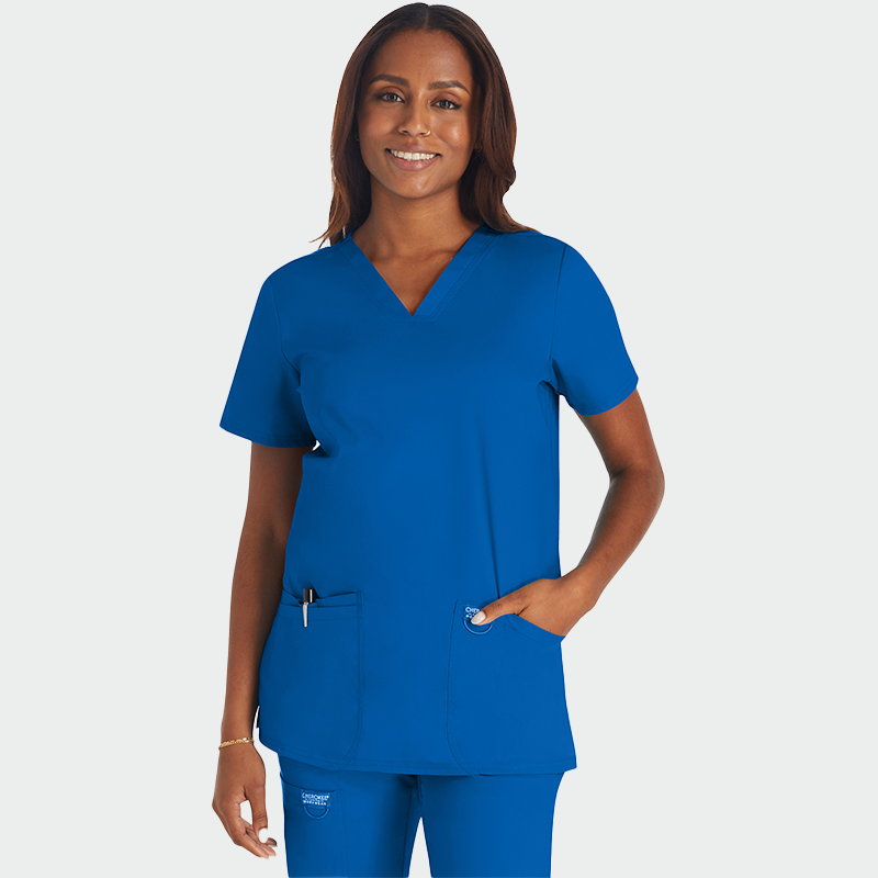 Медицинска туника Cherokee REVOLUTION WWE620 е модерна дамска туника с втален силует и остро деколте, изработена от висококачествена смес – 78% полиестер, 20% вискоза и 2% еластан (170 г/м²). Разполага с къс ръкав, два предни джоба – единият с отделение за химикалка и халка за бадж. Меката и дишаща материя осигурява комфорт и е подходяща за лекари, медицински сестри, зъболекари, фармацевти, ветеринари и студенти. Предлага се в няколко модерни цвята и е идеална за ежедневна медицинска работа.