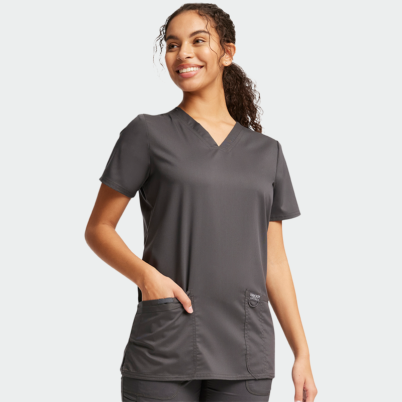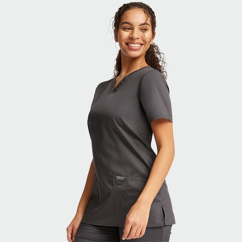 Медицинска туника Cherokee REVOLUTION WWE620 е модерна дамска туника с втален силует и остро деколте, изработена от висококачествена смес – 78% полиестер, 20% вискоза и 2% еластан (170 г/м²). Разполага с къс ръкав, два предни джоба – единият с отделение за химикалка и халка за бадж. Меката и дишаща материя осигурява комфорт и е подходяща за лекари, медицински сестри, зъболекари, фармацевти, ветеринари и студенти. Предлага се в няколко модерни цвята и е идеална за ежедневна медицинска работа.