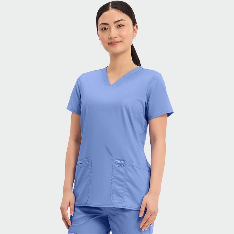 Медицинска туника Cherokee REVOLUTION WWE620 е модерна дамска туника с втален силует и остро деколте, изработена от висококачествена смес – 78% полиестер, 20% вискоза и 2% еластан (170 г/м²). Разполага с къс ръкав, два предни джоба – единият с отделение за химикалка и халка за бадж. Меката и дишаща материя осигурява комфорт и е подходяща за лекари, медицински сестри, зъболекари, фармацевти, ветеринари и студенти. Предлага се в няколко модерни цвята и е идеална за ежедневна медицинска работа.
