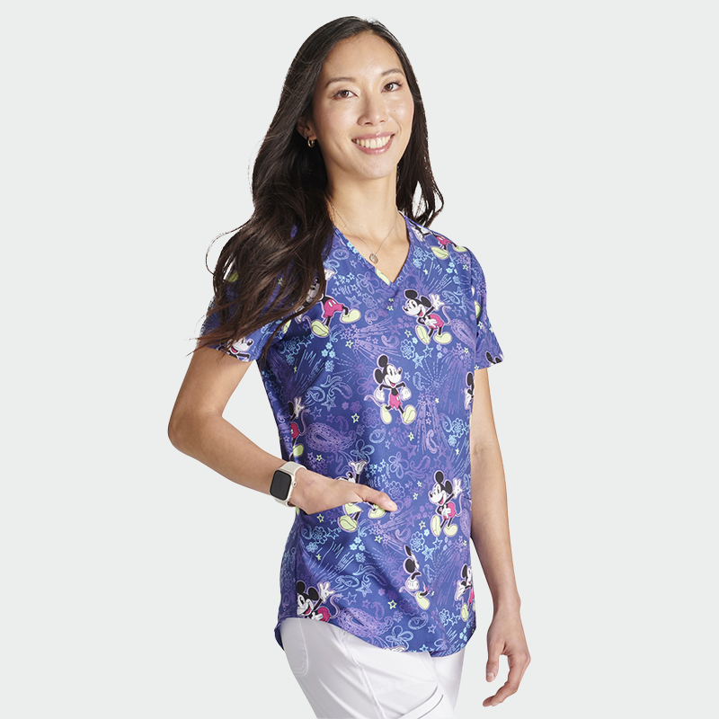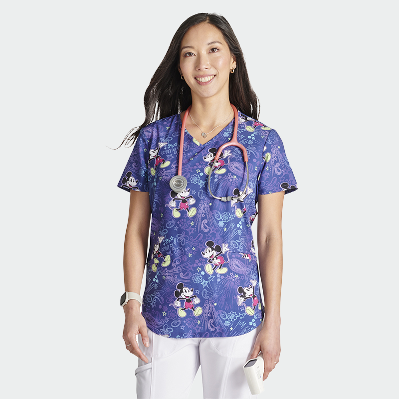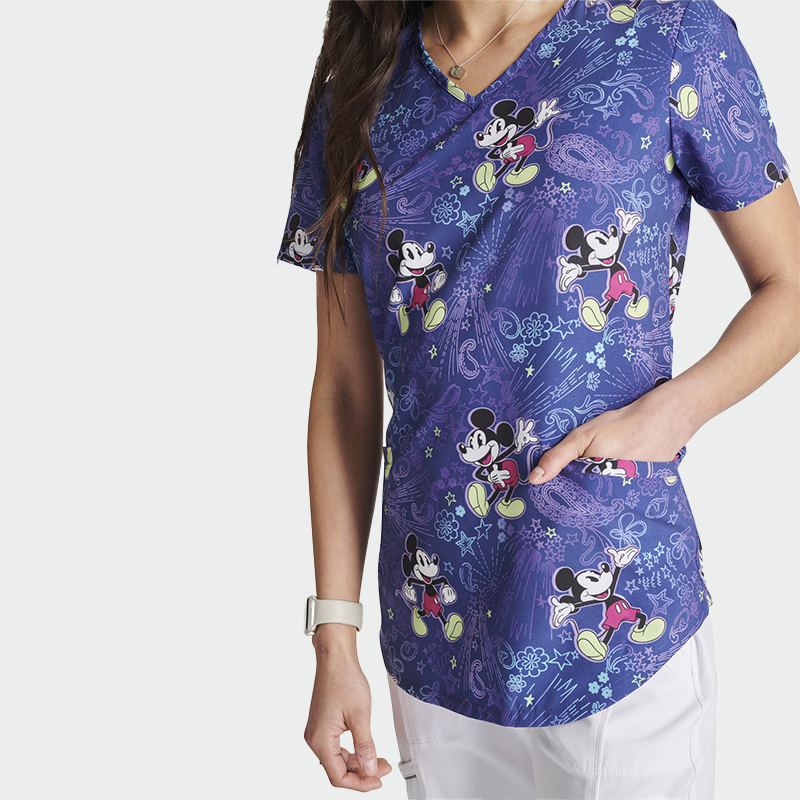 Медицинска туника CHEROKEE TOONIFORMS-DISNEY TF737 с дамски втален силует и V-образно деколте. Изработени от 93% полиестер и 7% еластан (175 г/м²), осигуряват комфорт, свобода на движение и лесна поддръжка. Туниката има къс ръкав и два предни джоба, подходяща за лекари, медицински сестри, зъболекари, фармацевти, ветеринари и студенти. Достъпна в размери от 2XS до 2XL. Стилен и цветен принт добавя настроение и индивидуалност към работната среда. Идеален избор за ежедневна работа, съчетаващ удобство и забавление.