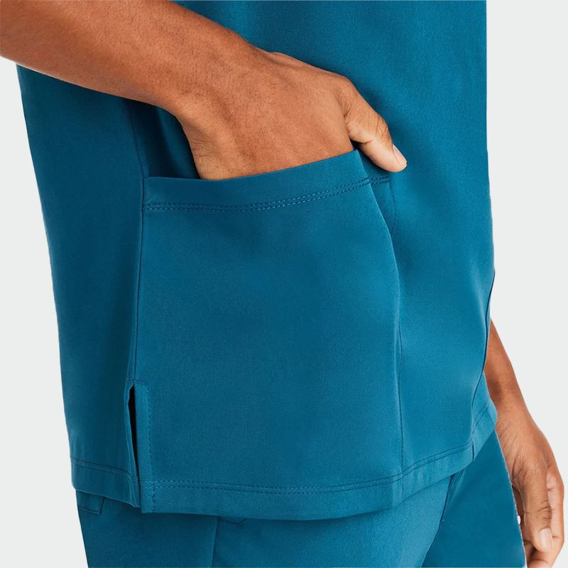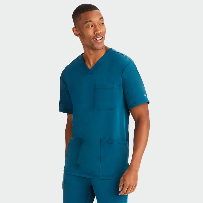 Мъжката медицинска туника Mathew на Healing Hands е създадена за комфорт и професионализъм. Изработена от 91% полиестер и 9% еластан с плътност 175 g/m², тя е мека, еластична и удобна за целодневно носене. Моделът разполага с остро деколте, къс ръкав, джоб на гърдите и два предни долни джоба за съхранение на медицински инструменти. Идеална за лекари, медицински сестри и професионалисти в здравеопазването, туниката Mathew съчетава стил, практичност и свобода на движение.