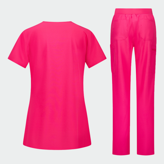 Медицински комплект BELLA е стилен дамски комплект, изработен от лека и дишаща материя (94% полиестер, 6% еластан), осигуряващ комфорт и свобода на движение през целия работен ден. Туниката е с къс ръкав, остро деколте, странични цепки и практични джобове. Панталонът има широка еластична талия, връзка за пристягане и множество джобове. Подходящ за лекари, медицински сестри, фармацевти, зъболекари, ветеринари и служители в козметични центрове. Комбинацията от удобство и модерна визия прави BELLA идеален избор за медицински персонал.