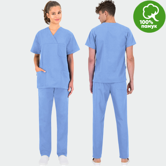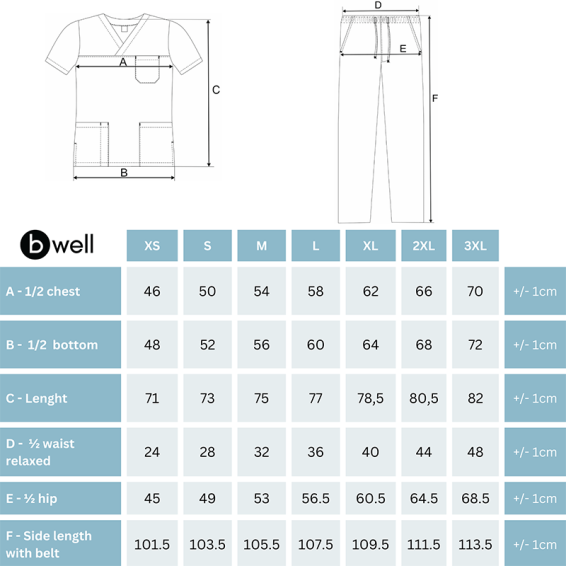 Медицински комплект MORELLI b-well е изработен от 100% сертифициран Oeko-Tex памук, осигуряващ комфорт и защита от алергии. Унисекс моделът включва туника с V-образно деколте, 3 джоба и странични цепки, както и панталон с ластик, връзки и 3 функционални джоба. Благодарение на CL 40°C технологията, цветът се запазва дълготрайно при пране. Подходящ за лекари, хирурзи и медицински персонал. Идеален за носене върху тениска или термо бельо – особено в по-хладно време.