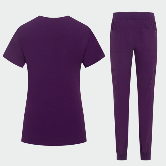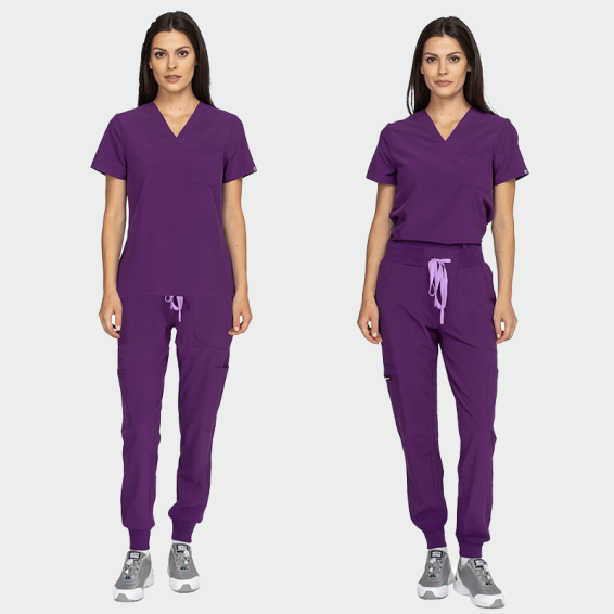 Дамски медицински комплект NAOMI – стилен и удобен избор за медицински специалисти. Състои се от туника с остро деколте, къс ръкав, странични цепки и три джоба, и панталон тип "джогър" с ластик, връзка и функционални джобове. Изработена от висококачествена, дишаща материя (94% полиестер / 6% еластан), осигуряваща комфорт и свобода на движение. Подходящ за лекари, медицински сестри, зъболекари, фармацевти и персонал в козметични центрове. Идеален за ежедневна употреба. Медицински комплект за жени, съчетаващ стил, практичност и качество.