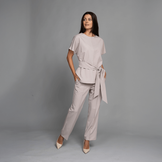 Медицински панталон ELLE от Bwell Atelier е стилно и удобно решение за професионалисти в здравния и уелнес сектор. Моделът е с прав крачол и повдигната талия за елегантна визия и удобно прилягане. Изработен е от висококачествена материя – 75% полиестер, 20% вискоза, 5% еластан, осигуряваща лекота, мекота и устойчивост при ежедневно носене. Закопчава се с цип и метална кука, има два странични джоба и изчистен дизайн. Леко еластичната материя осигурява свобода на движение. Подходящ избор за медицинска униформа с професионален стил.