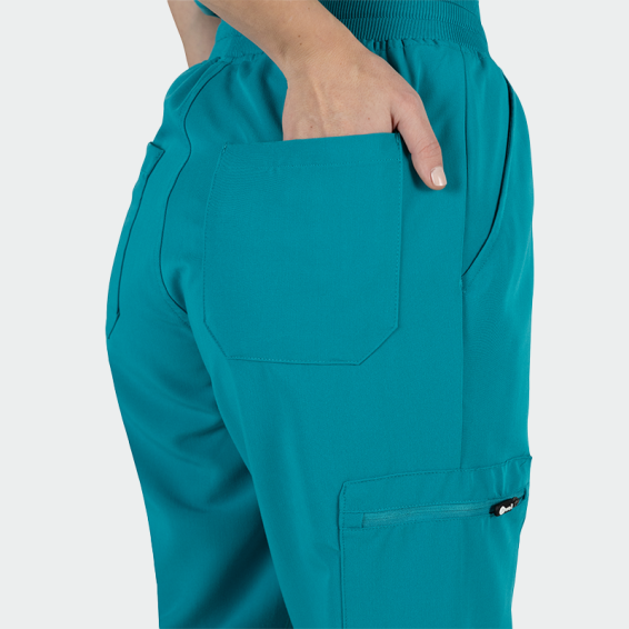 Медицински панталон MAURI от B-well е стилен и удобен унисекс модел, изработен от дишаща материя – полиестер, вискоза и еластан. Подходящ за лекари, медицински сестри, фармацевти, ветеринари и служители в естетични центрове. Панталонът разполага с широк ластик в талията, връзки за регулиране, еластичен маншет, два предни и няколко странични джоба, включително един с цип. Идеален за динамична работна среда, като осигурява комфорт и свобода на движение през целия ден. MAURI е перфектен избор за професионален медицински екип.