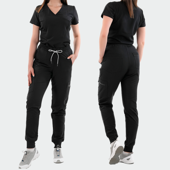 Дамски медицински панталон RICCI от B-well комбинира стил и комфорт. Изработен от дишаща материя – 72% полиестер, 21% вискоза и 7% еластан (200 г/м²), осигурява свобода на движение и предотвратява изпотяване. Подходящ за лекари, медицински сестри, зъболекари и персонал в клиники или естетични студиа. Моделът е с ластик и връзки в талията, ластик на крачолите и седем функционални джоба, включително един с цип. Спортно-елегантната кройка го прави идеален както за работа, така и за свободното време.