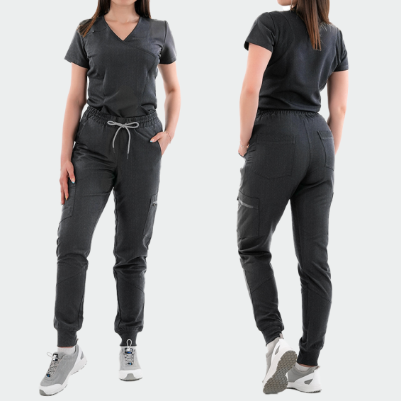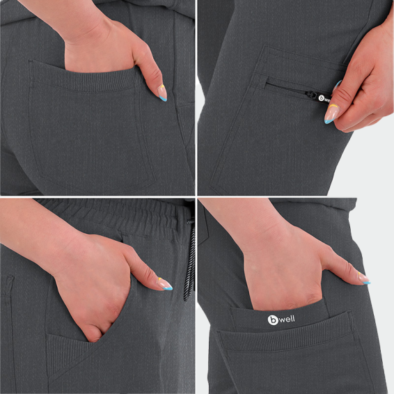 Дамски медицински панталон RICCI от B-well комбинира стил и комфорт. Изработен от дишаща материя – 72% полиестер, 21% вискоза и 7% еластан (200 г/м²), осигурява свобода на движение и предотвратява изпотяване. Подходящ за лекари, медицински сестри, зъболекари и персонал в клиники или естетични студиа. Моделът е с ластик и връзки в талията, ластик на крачолите и седем функционални джоба, включително един с цип. Спортно-елегантната кройка го прави идеален както за работа, така и за свободното време.
